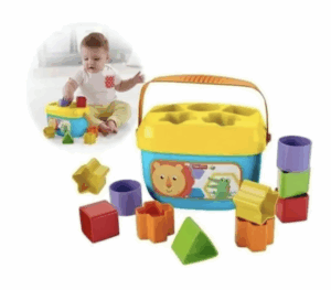 Por que é bom: introduz formas geométricas e coordenação olho-mão. O desafio de acertar a forma no orifício certo mantém o bebê motivado.